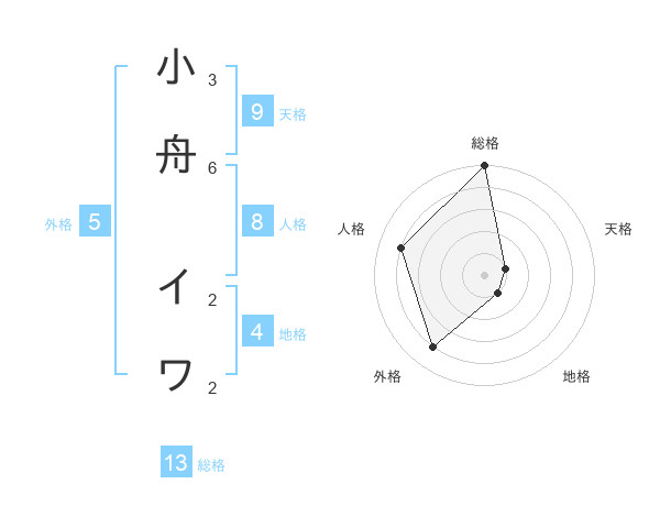 小舟 イワさんの総格は13画の5点