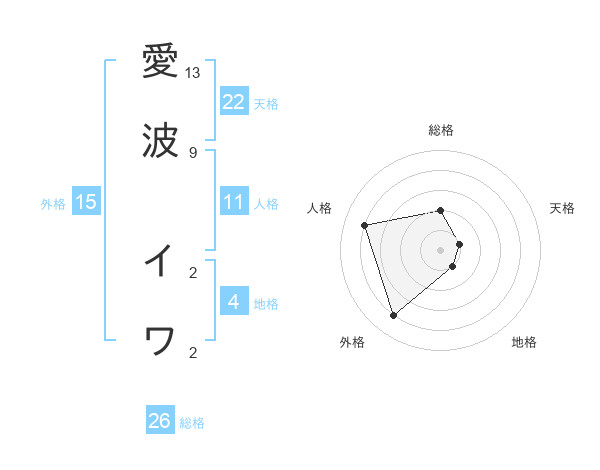 愛波 イワさんの天格は22画の1点!