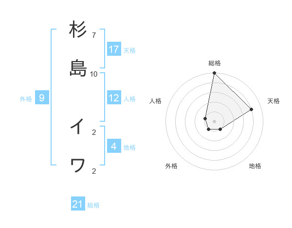 杉島 イワさんの総格は21画の5点!