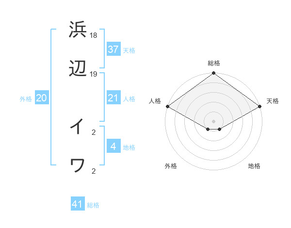 浜辺 イワさんの総格は41画の5点!
