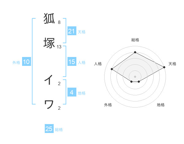 狐塚 イワさんの天格は21画の5点!