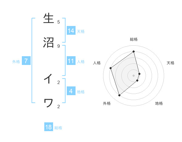 生沼 イワさんの人格は11画の4点!