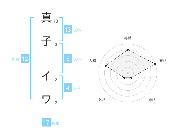 真子 イワさんの天格は13画の5点!