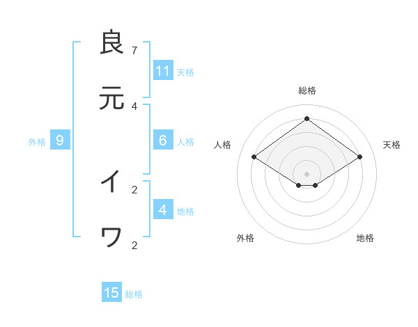 良元 イワさんの総格は15画の4点!