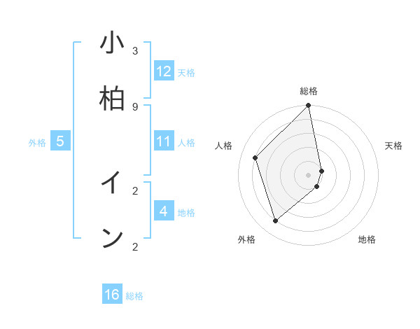 小柏 インさんの総格は16画の5点!