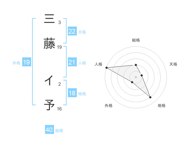 三藤 イ予さんの外格は19画の1点!