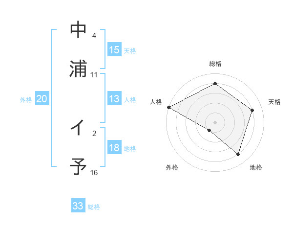 中浦 イ予さんを姓名の画数から五運を鑑定