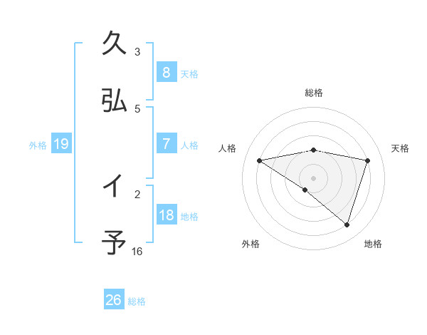 久弘 イ予さんを姓名の画数から五運を鑑定