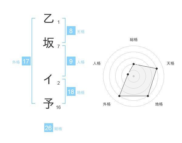乙坂 イ予さんを姓名の画数から五運を鑑定