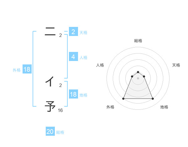 二 イ予さんの総格は20画の1点!