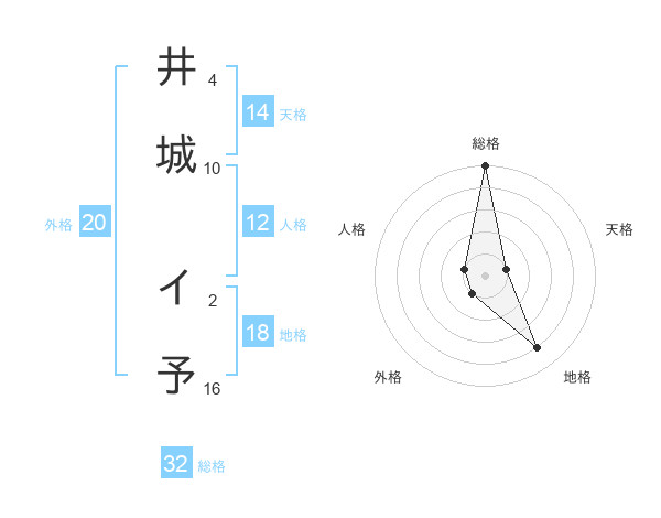 井城 イ予さんの総格は32画の5点!