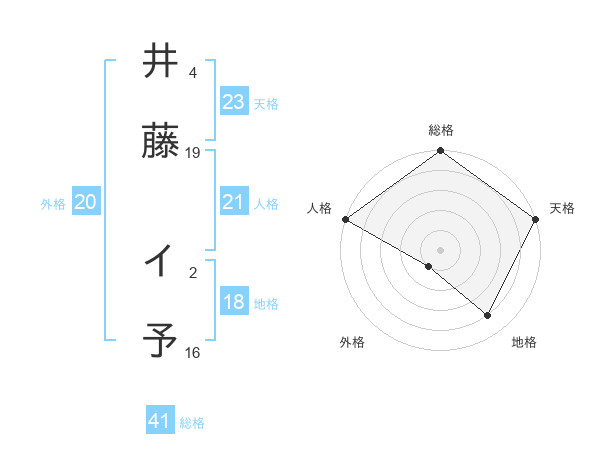 井藤 イ予さんの天格は23画の5点!