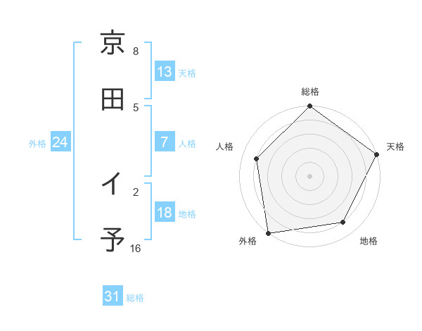 京田 イ予さんの総格は31画の5点!