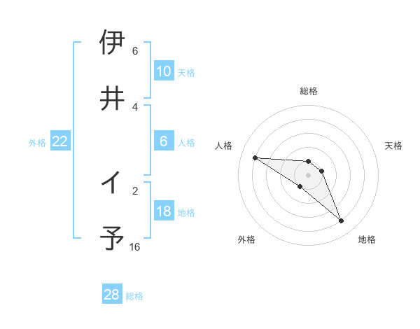 伊井 イ予さんの総格は28画の1点!