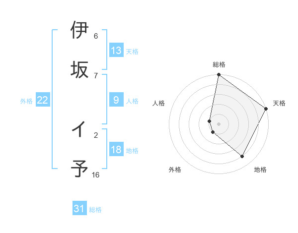 伊坂 イ予さんの総格は31画の5点!