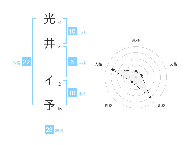 光井 イ予さんの総格は28画の1点!