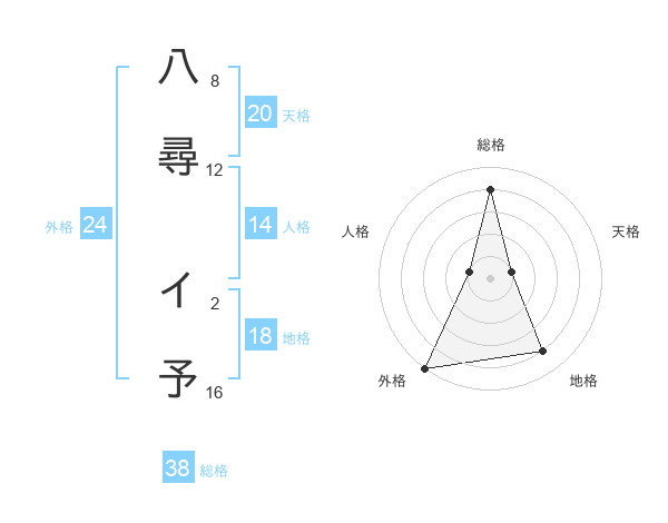 八尋 イ予さんの総格は38画の4点!