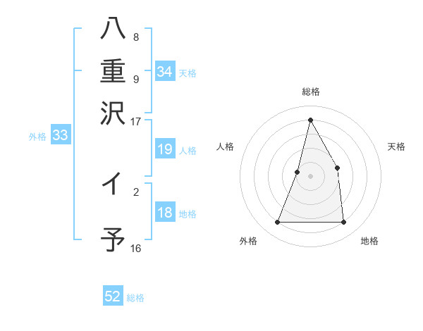 八重沢 イ予さんを姓名の画数から五運を鑑定