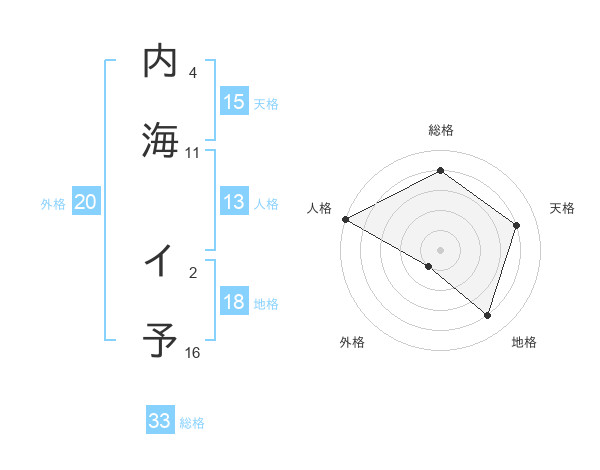 内海 イ予さんの人格は13画の5点!