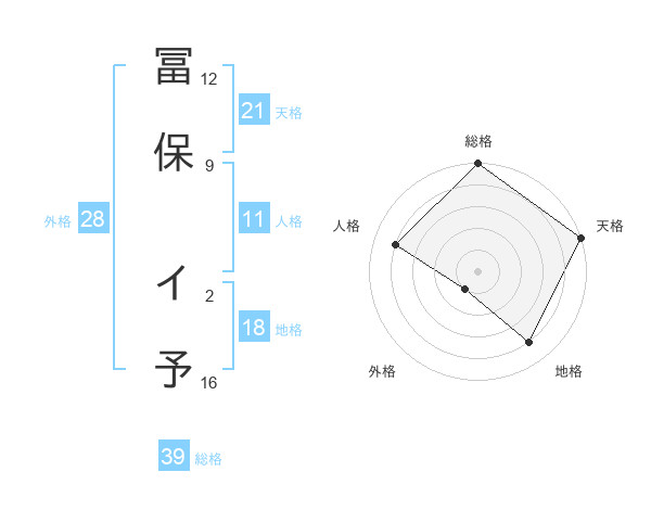 冨保 イ予さんを姓名の画数から五運を鑑定