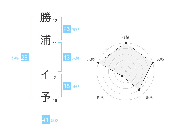 勝浦 イ予さんを姓名の画数から五運を鑑定