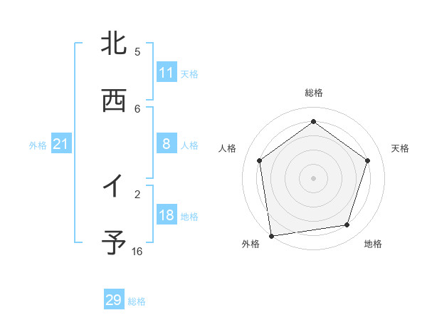 北西 イ予さんの総格は29画の4点!