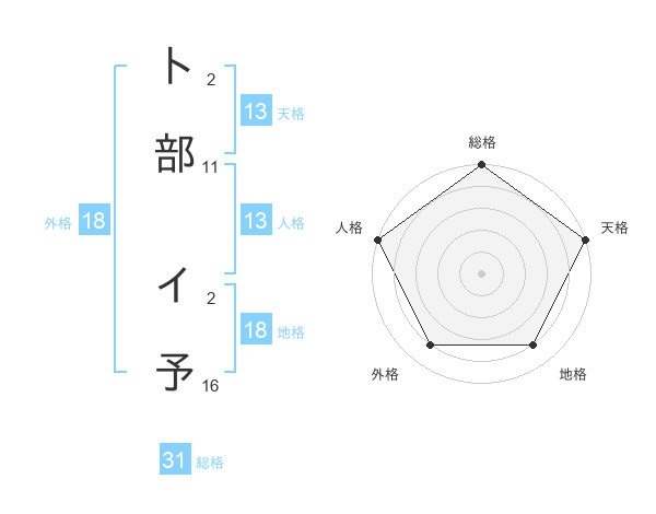卜部 イ予さんを姓名の画数から五運を鑑定