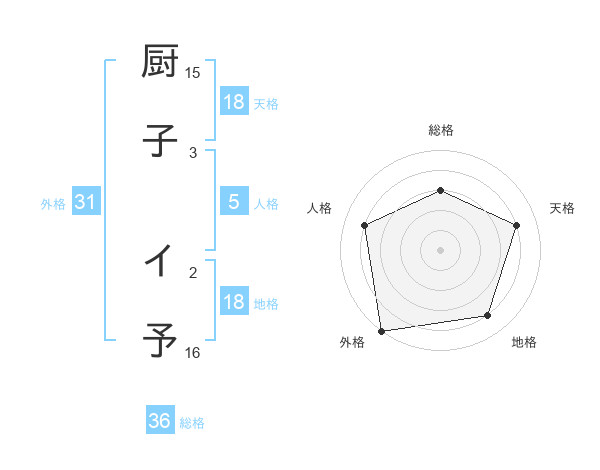 厨子 イ予さんを姓名の画数から五運を鑑定