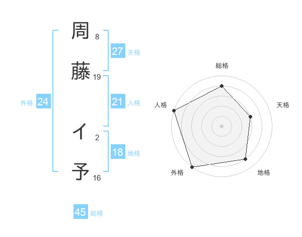 周藤 イ予さんの外格は24画の5点!