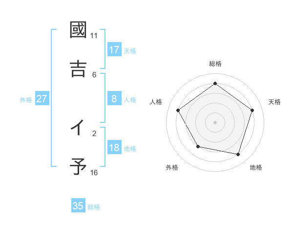 國吉 イ予さんを姓名の画数から五運を鑑定
