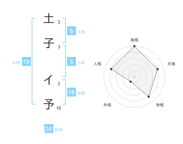 土子 イ予さんの総格は24画の5点!
