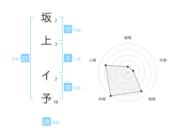 坂上 イ予さんの総格は28画の1点!