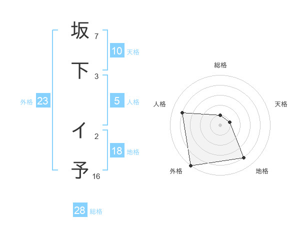 坂下 イ予さんの外格は23画の5点!