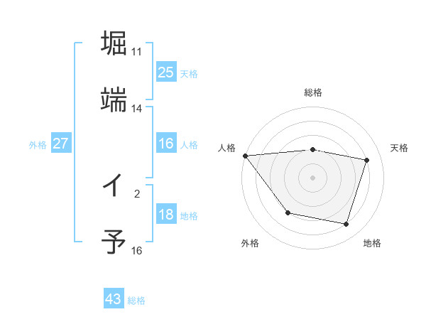 堀端 イ予さんを姓名の画数から五運を鑑定