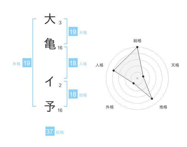 大亀 イ予さんの総格は37画の5点!