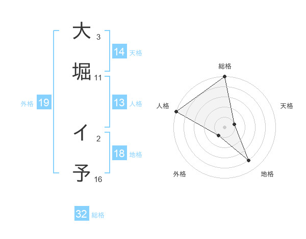大堀 イ予さんを姓名の画数から五運を鑑定
