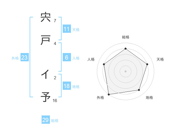 宍戸 イ予さんの総格は29画の4点!