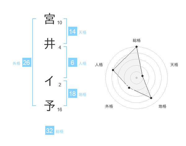 宮井 イ予さんの天格は14画の1点!