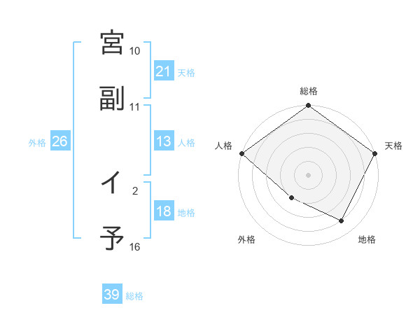 宮副 イ予さんを姓名の画数から五運を鑑定