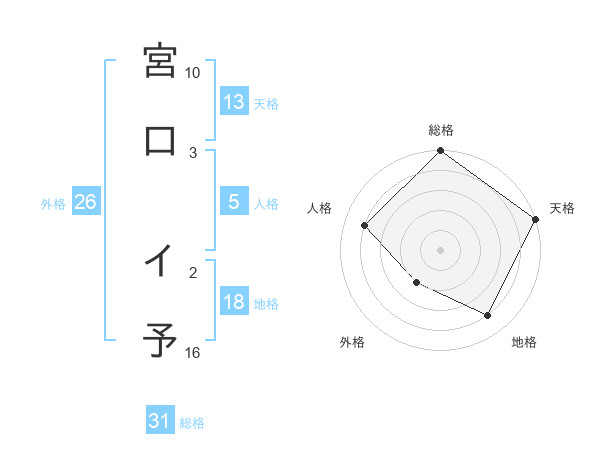 宮口 イ予さんの天格は13画の5点!