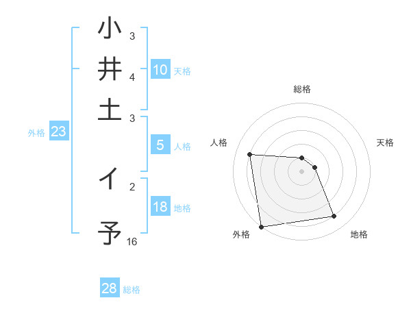 小井土 イ予さんを姓名の画数から五運を鑑定