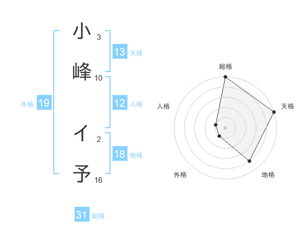 小峰 イ予さんを姓名の画数から五運を鑑定