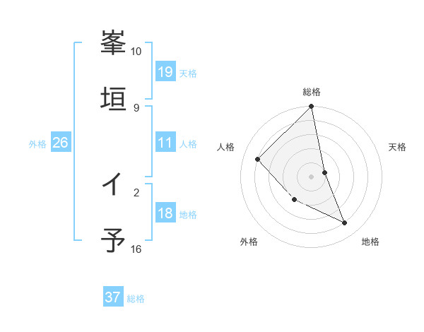 峯垣 イ予さんの総格は37画の5点!