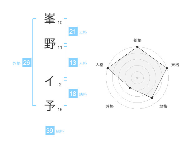 峯野 イ予さんの天格は21画の5点!