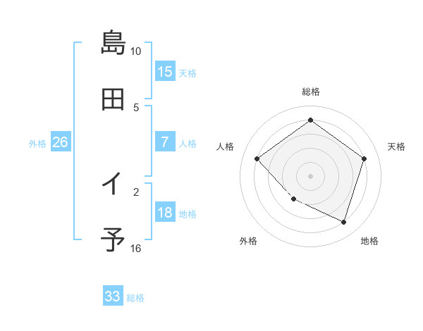 島田 イ予さんの天格は15画の4点!