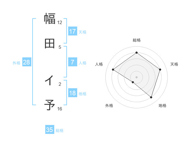 幅田 イ予さんの総格は35画の4点!