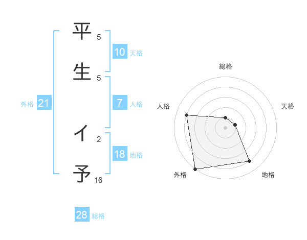 平生 イ予さんの外格は21画の5点!