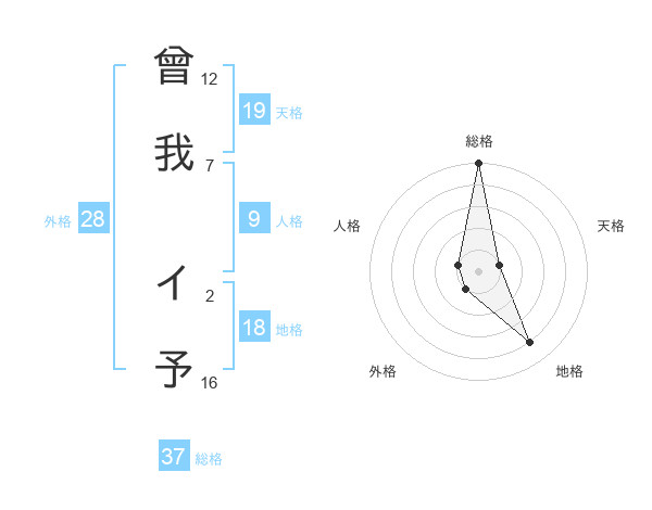 曾我 イ予さんを姓名の画数から五運を鑑定