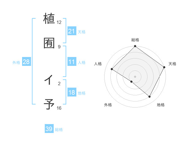 植囿 イ予さんを姓名の画数から五運を鑑定
