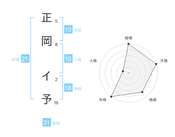 正岡 イ予さんの総格は31画の5点!